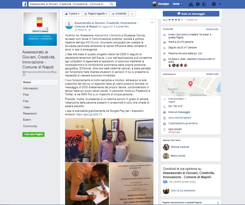 Presentata al Comune di Napoli, alla presenza dell’Assessore ai giovani e alle politiche giovanili Alessandra Clemente, SOSocial: applicazio