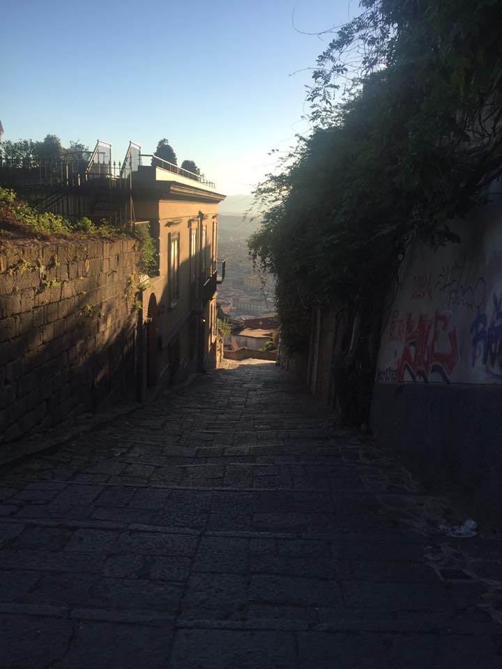 Ma non volevo farti il pistolotto del bravo napoletano. Uno che fa la persona civile fa un quarto del suo dovere di cittadino avrebbe detto nonna. Volevo solo dirti che se decidi di fare pulizia straordinaria, restituire decoro e dignità ad una scala che risale al XIV secolo, alla sommità della quale trovi la Certosa di San Martino in condizioni pietose, le mura di Castel Sant’Elmo che cadono, uno slargo che è una latrina pubblica e il terrazzo che guarda il Vesuvio usato per il lancio delle bottiglie sotto, io sono il tuo primo volontario.