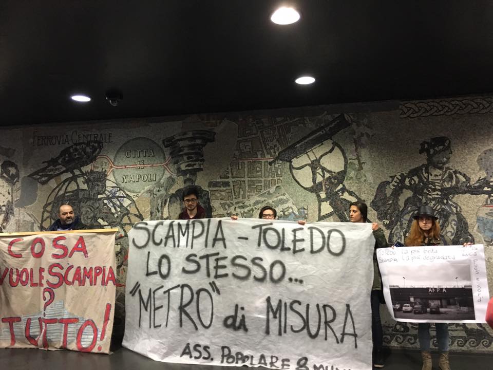Qualche giorno fa, si è tenuto un flash mob voluto dalle associazioni del quartiere Scampia per sensibilizzare e riportare l’attenzione della città e dei media sulle condizioni in cui versa la stazione della metropolitana.