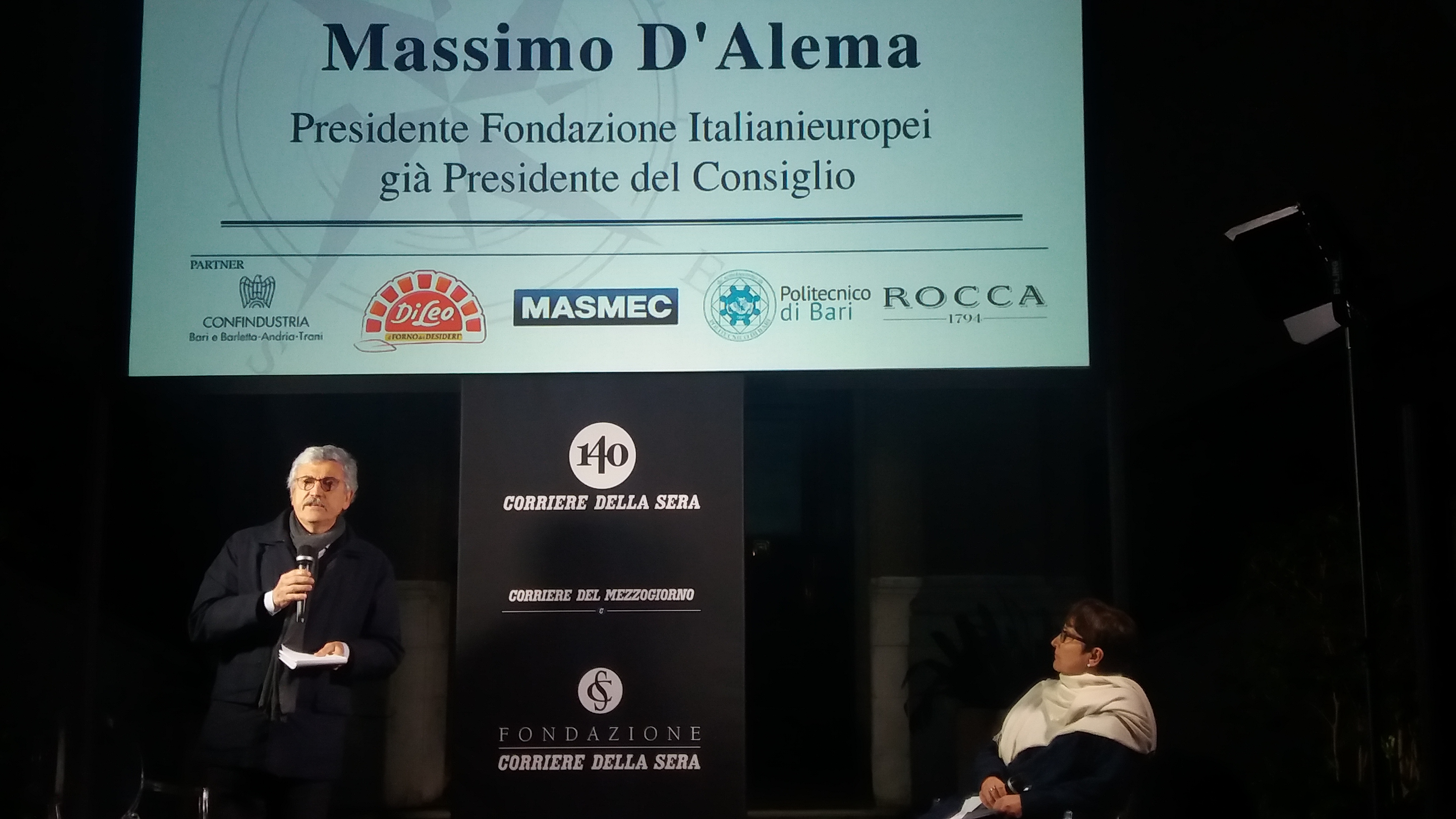 Il presidente della Fondazione “Italianieuropei” ed ex Presidente del Consiglio Massimo D’Alema, a Bari per il primo appuntamento del nuovo ciclo di incontri «Da Sud a Sud» promossi dal Corriere del Mezzogiorno e della Fondazione Corriere della Sera, durante il suo intervento non ha solo descritto la complessità e fragilità dell’attuale sistema geo-politico internazionale, ma anche ha provato a disegnare la via per raggiungere la pace in quei territori, patrimonio dell’umanità per essere stati tra gli incubatori storici della nostra civiltà, oggi dilaniati dalla prepotenza e dalla violenza dell’Isis. “La Siria – ha evidenziato ancora D’Alema – oggi è crocevia di interessi geo-strategici; è terra di conflitti prodotti e partecipati da diverse potenze straniere e, perciò, fino a quando ogni fazione farà la propria guerra non ci sarà una risoluzione definitiva. Pur non essendo facile, confido, però, che Stati Uniti e Russia da un lato e Arabia Saudita ed Iran dall’altro, con il sostegno e la collaborazione di tutta la comunità internazionale, avviino un dialogo che possa agevolmente schiacciare l’Isis e portare alla formazione di un governo di riconciliazione nazionale diverso dall’attuale che possa favorire, inoltre, la nascita di un nuovo sistema sociale fondato sulla convivenza e sulla tolleranza”.