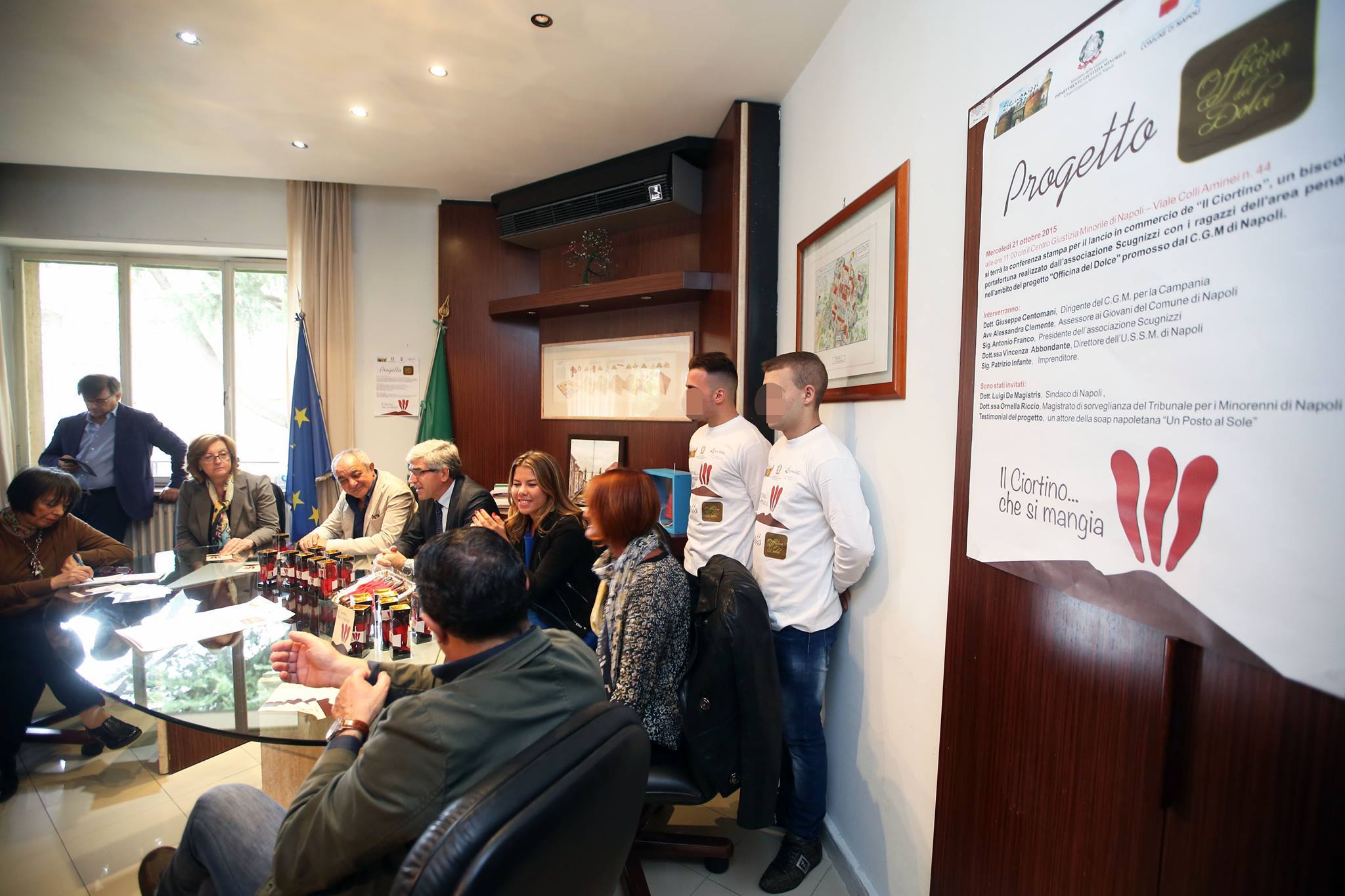 Insieme al dott. Giuseppe Centomani, Dirigente del C.G.M., Antonio Franco, Presidente dell’associazione Scugnizzi, la dott.ssa Vincenza Abbondante, Direttore dell’U.S.S.M. di Napoli e Patrizio Infante, lo abbiamo presentato alla stampa #ilgustodellecose.