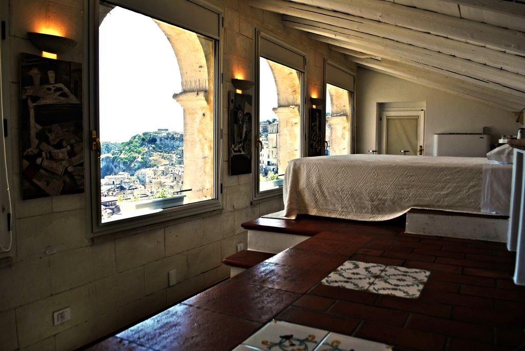 C’è la “Casa dell’uva“, la “Festa”, la “Cupa Cupa“, la “Stanza di famiglia“, il “Monaco”, la “Stanza dell’Amore“, la “Stanza del sale” e poi, all’ultimo piano, la “Stanza dell’Artista” che riserva agli ospiti una vista mozzafiato sui sassi e sulla Gravina. Quanta bellezza in un solo luogo. Quanto studio nel realizzare Casa Diva, un luogo diverso nel cuore dei sassi. Oppure? Come si può raccontare, Francesca? “Non un luogo – mi dice – ma dei luoghi, l’uno diverso dall’altro, visto che ogni stanza racconta una storia. Per restare alle tue parole, quindi, Casa Diva è “diversi luoghi” nel cuore dei Sassi ma anche del centro storico di Matera, visto che è collocata praticamente sulla linea mediana che li separa...”